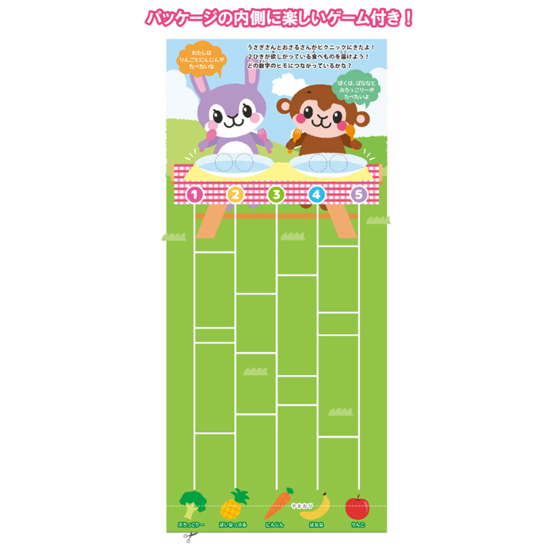 キュートなどうぶつの顔のアソートです。パッケージの内側には楽しいゲーム付き!