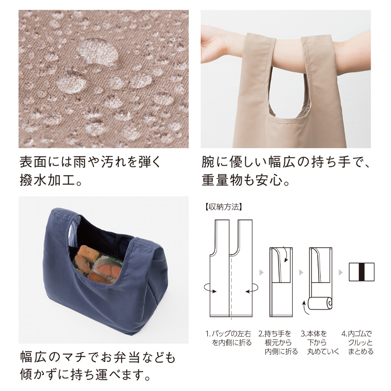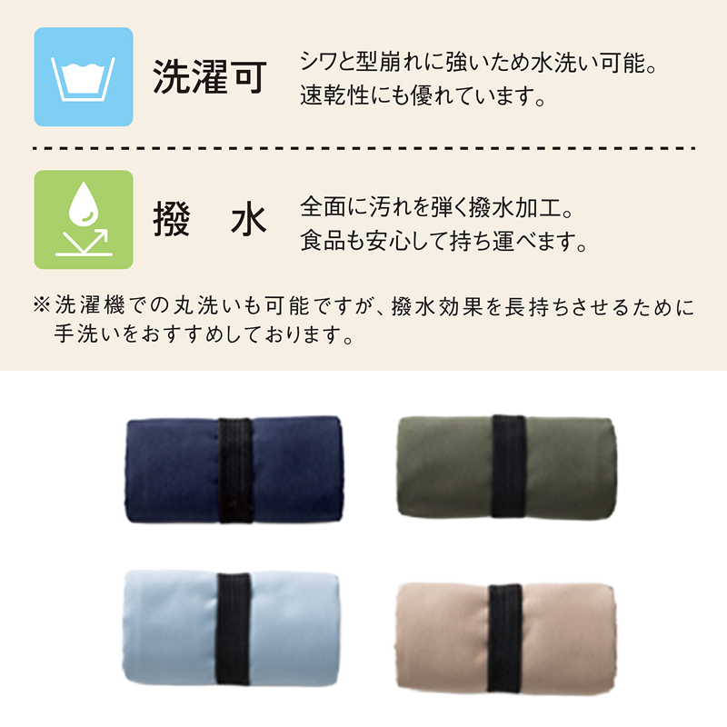 コットンの肌触りとポリエステルの機能性を兼備した上質素材。 汚れを弾く撥水加工+水洗いできる素材で、毎日のお買い物に最適!