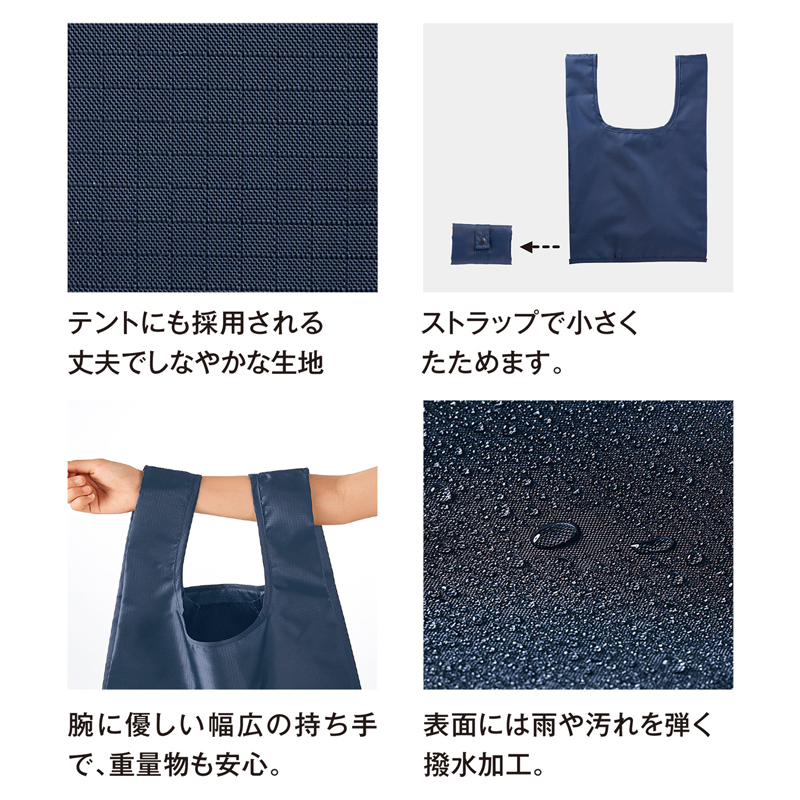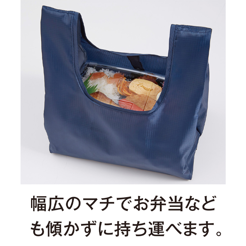 お弁当が傾かず運べる、マチの広い折りたたみトート。