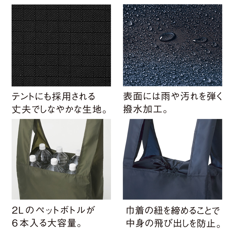 テントクロス生地を用いた、タフ&大容量のレジカゴトート。 抗菌仕様なので、レジカゴにかぶせても衛生的に使用できます。