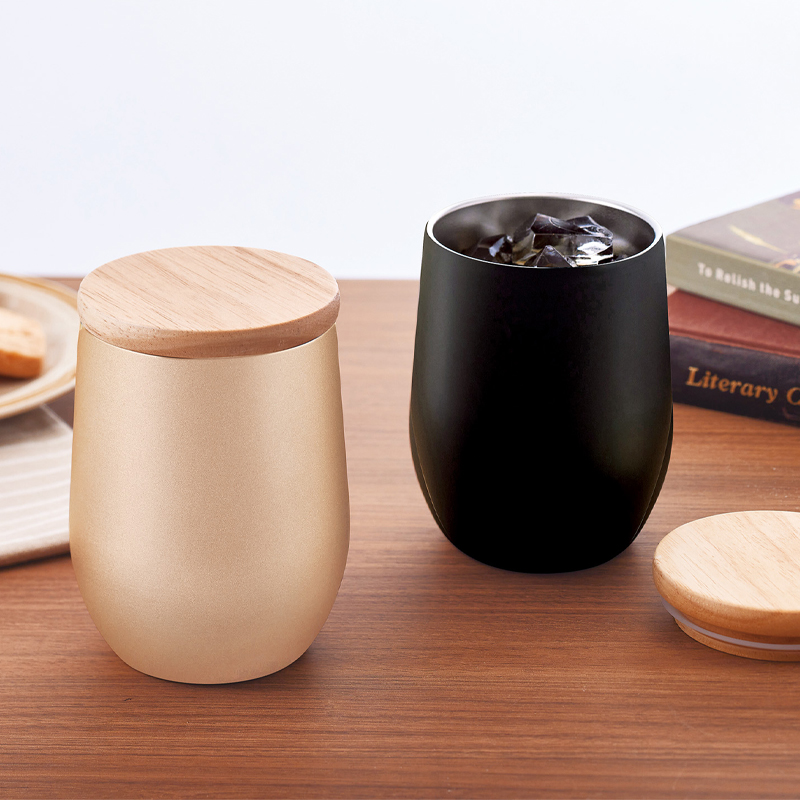 ・真空2重構造のステンレスタンブラーと、パッキン付きの木蓋で、保冷温効果が抜群。