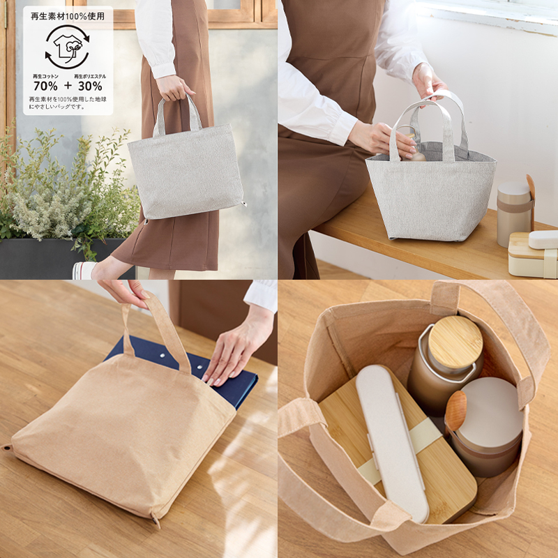 ・A4サイズが入る資料持ち運び用バッグと、マチ広のランチバッグの2way仕様。