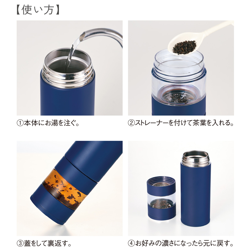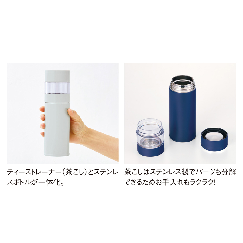 ・ティーストレーナー(茶こし)とステンレスボトルが一体化。