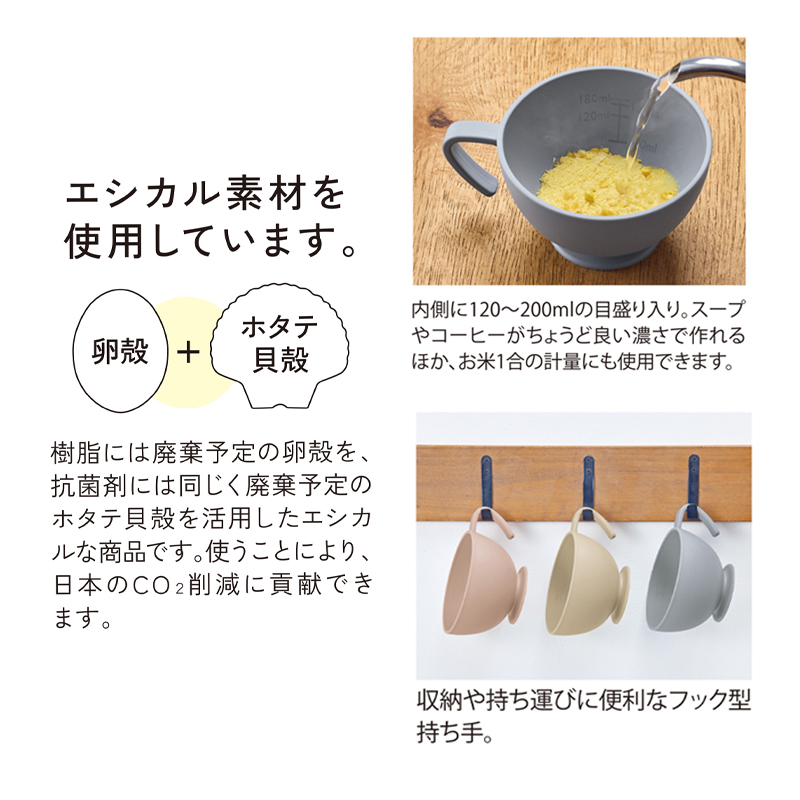・本体には廃棄予定の卵殻、抗菌剤にはホタテ貝殻を配合。日本の産業廃棄物削減に貢献できます。