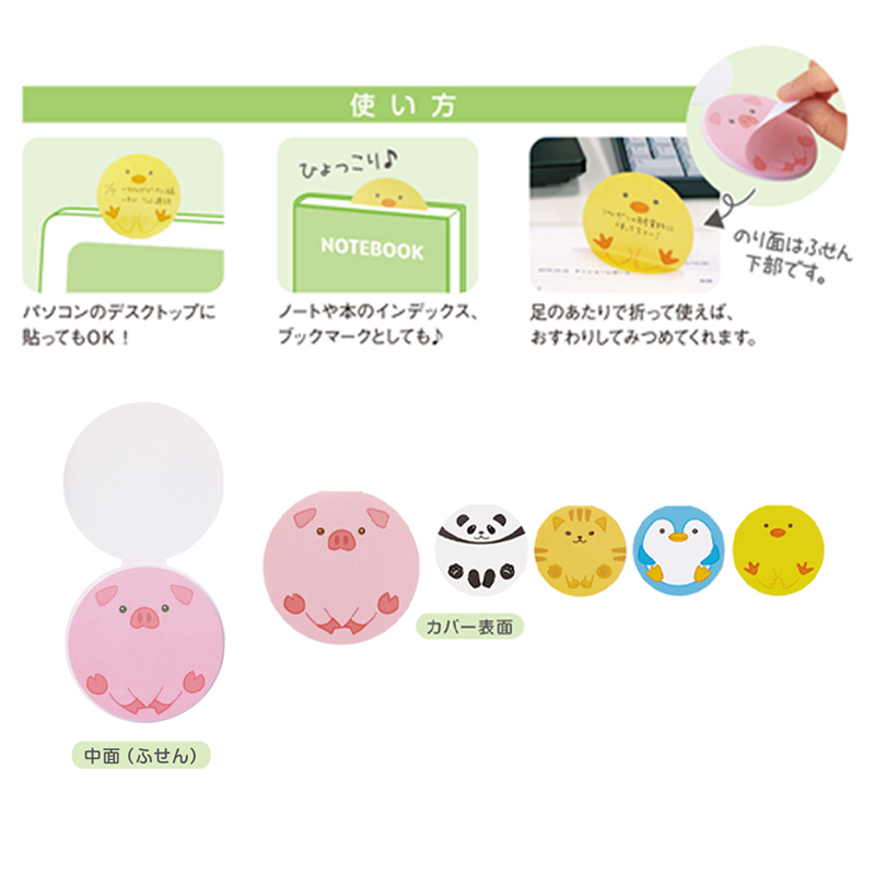 ・ふせんは5種(ぶた、パンダ、ねこ、ペンギン、ひよこ)✕30枚。