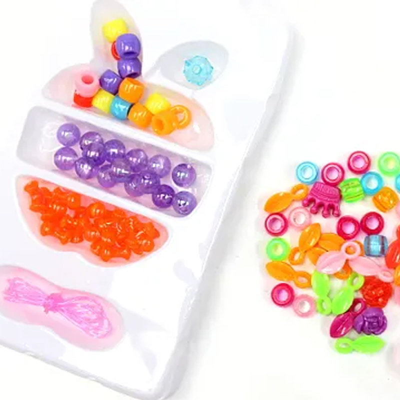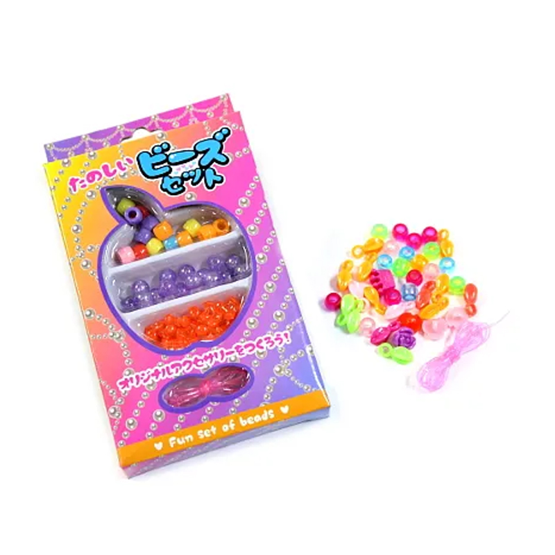オリジナルアクセサリーが作れちゃう!たのしいビーズセットです。箱の中にはビーズと、それを通す糸(テグス)が入っています。