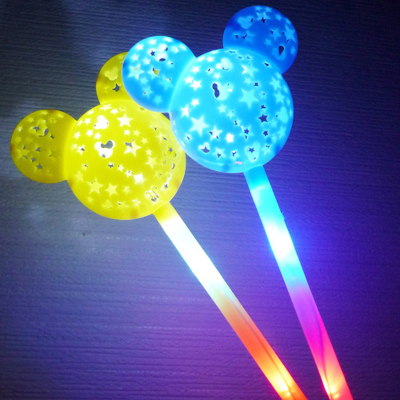 手元のボタンを押すとバトンがピカピカ点滅!壁などの近くで光らせると星とマウスの透かし模様の光がキレイに映えます♪本体カラーは全4色。夏の縁日・お祭り・各種イベントの光るおもちゃ・景品におススメです!